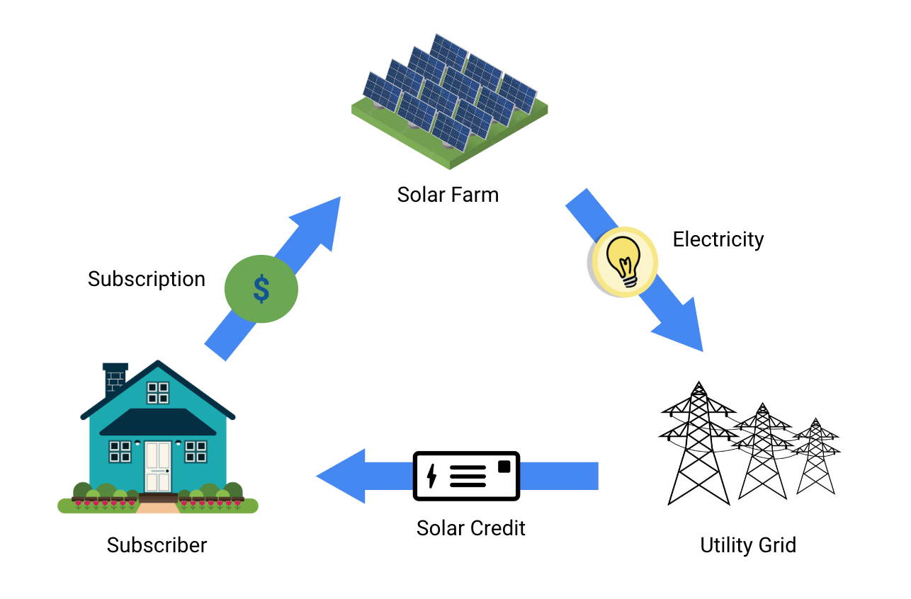Community solar is a form of solar energy generation that allows community members to access meaningful benefits of renewable energy, including reduced energy costs, low- to moderate-income household access, increased resilience, community ownership, and equitable workforce development and entrepreneurship. It is especially suitable for those who don’t own a home, live in an apartment or don’t have a good roof. Community solar subscribers sign up or subscribe to a solar project whose energy is entering the utility grid. The energy produced by this community system enters the grid like any other power plant’s energy, and the customer who signs up for the solar energy is compensated just by signing up. This process does not involve any cost to the subscriber. In fact, the subscriber receives dollar savings and credits in their electric bills in exchange for the subscription. The savings are usually 10% of the total bill each bill period for 25 years. All electricity customers and US taxpayers pay into this system to make the savings possible while also enabling renewable energy to be developed.